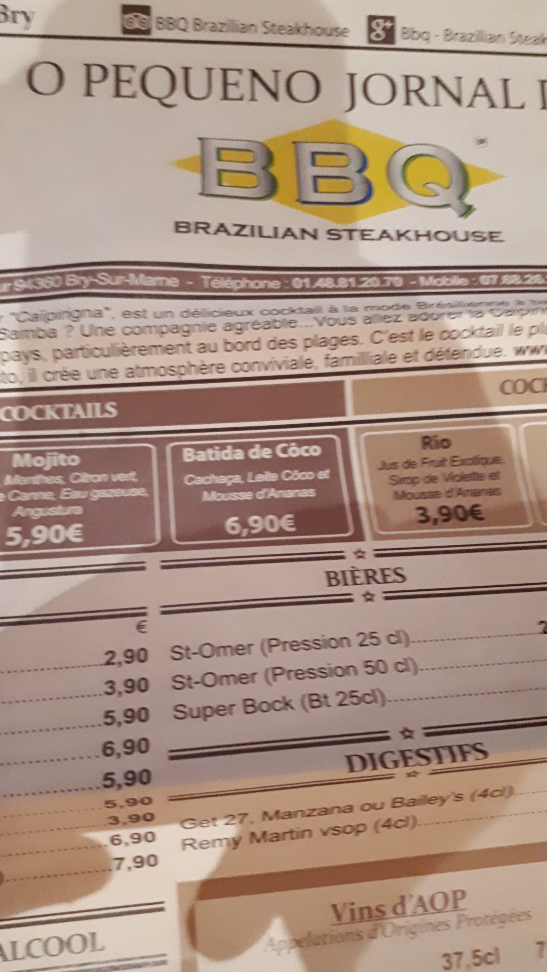 Voici toutes les informations sur le Restaurant brésilien Restaurant BBQ Brazilian Steakhouse qui ce trouve au 226-228 Bd Pasteur, 94360 Bry-sur-Marne (94). Sur cette fiche vous trouverez les photos, l'adresse, les horaires d'ouverture, le numero de téléphone et les avis clients.Vous pouvez églement rédiger un avis si vous le souhaitez en bas de page.