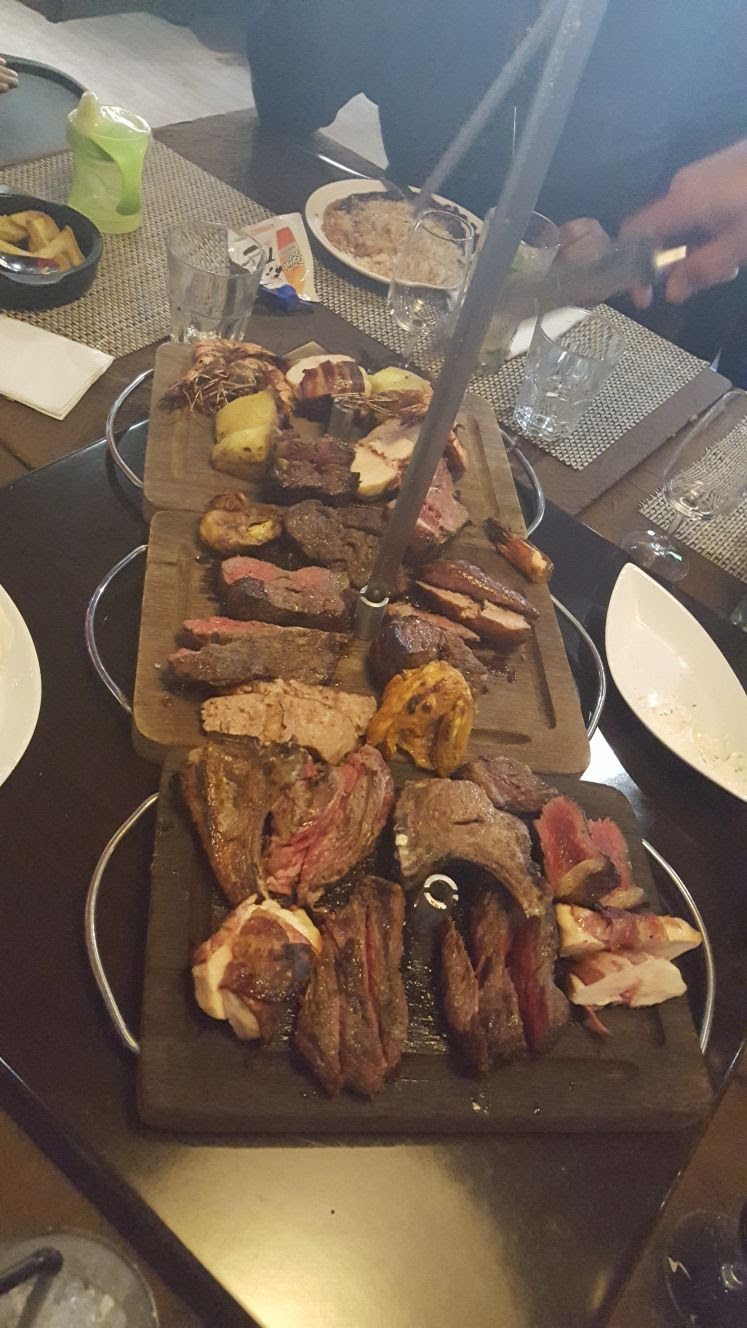 Passage pour le déjeuner pour goûter ce rodizio. Le lieu est grand avec beaucoup de places assise. Il y a aussi une grande terrasse et un espace enfant. On y retrouve la formule du « à volonté » avec un buffet froid et différentes viandes chaudes. Soyons clair, la viande est bien cuite et très bonne. Je recommande