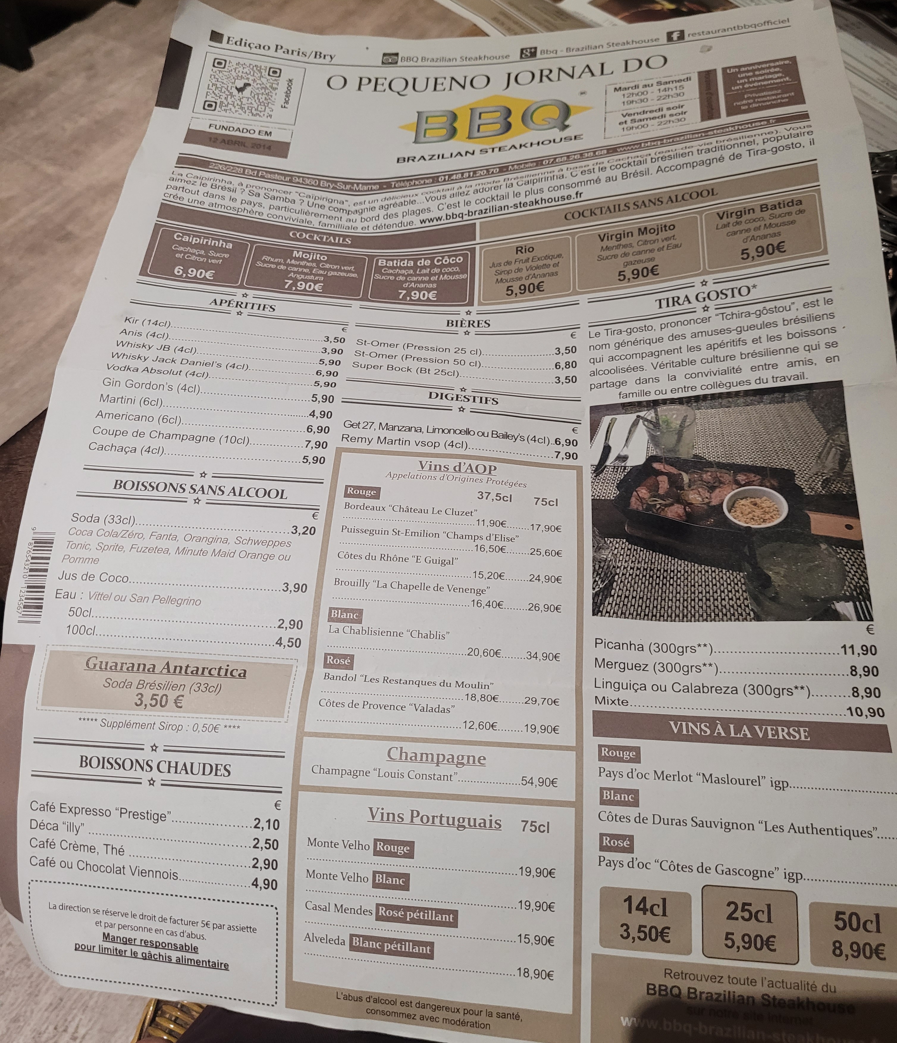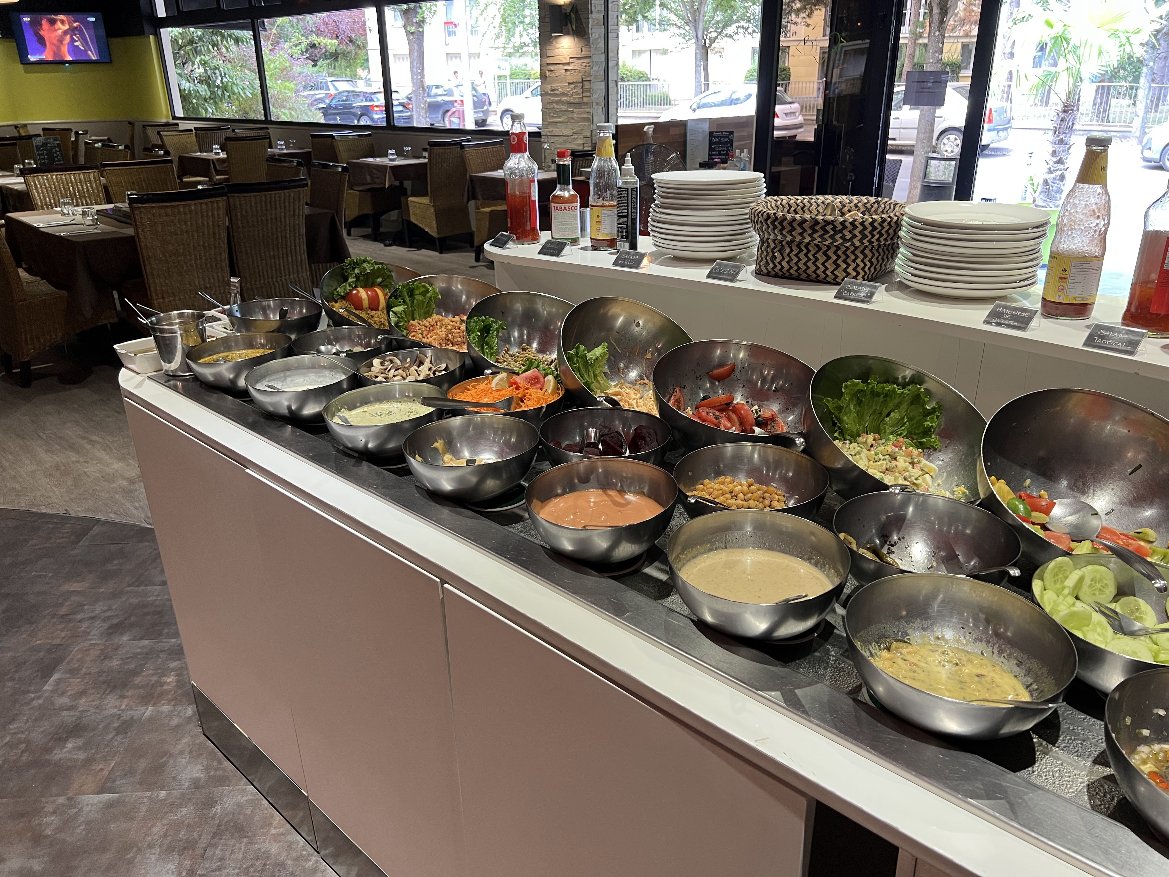 J'ai manger récemment dans ce restaurant et je peut dire que le service et le personnel sont agréables. Je suis partie un week-end et je peut dire que le week-end il n'y a que les entrés et légumes à volonté le reste est à commander, ce qui entraîne un note salé lors du paiement. Sinon le restaurant est grand et sympa mais j'ai comme même du mal à voir le Brésil au niveau de la viande et de certains plat. Par contre il y une variété de choix immense.