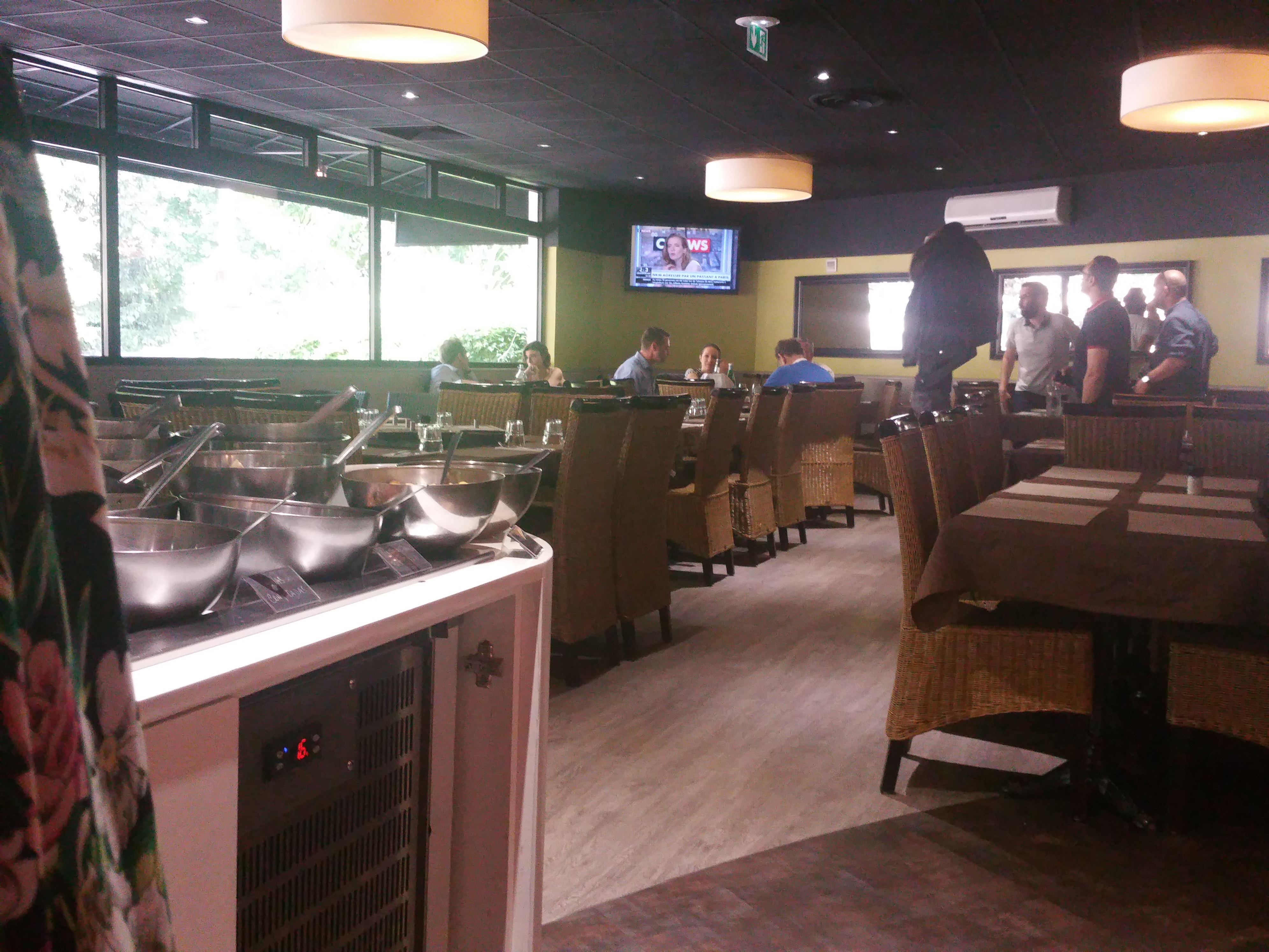 bonjour restaurant convivial. un grand choix de salade sur un buffet froid et de bonne viande au buffet chaud. le tous à volonté pour moin de 13 euro. vraiment De bon goût sa change des restaurants traditionnelle. manque juste le dessert compris au menu si non parfait je vous le recommande.