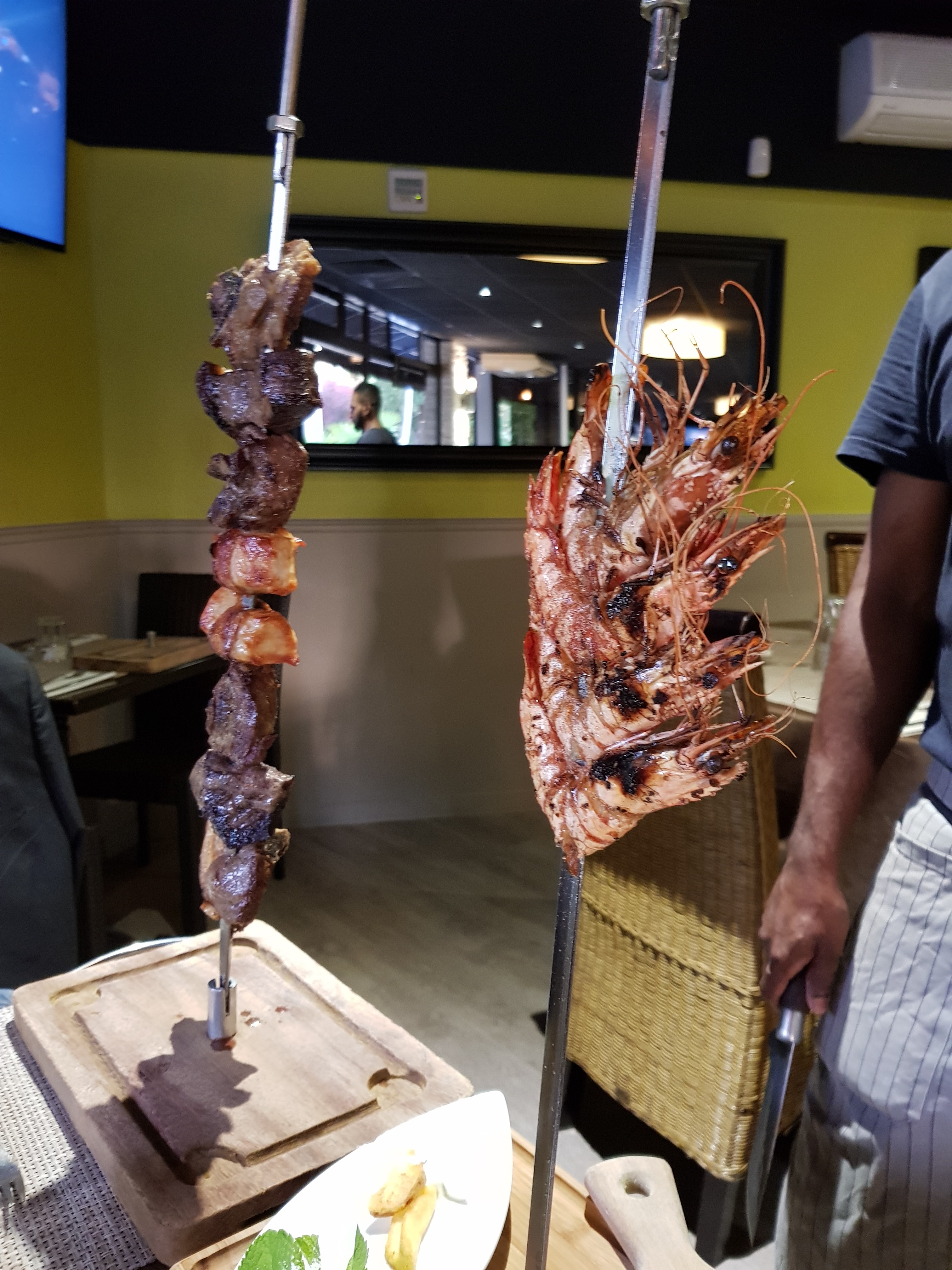 Lieu sympa, dépaysant ! Grillades au son du Brazil. Les assiettes sont bien présentée et généreuses. A tester les gambas, excellent