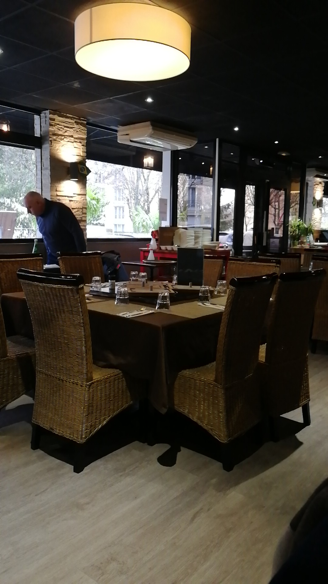 restaurant très calme buffet pas trop de choix a volonté sans les dessert qui doivent être commander en supplément et payant les viandes ce commande en supplément payant aussi au gramme sinon très convivial et très propre raisonnable niveau tarif .
