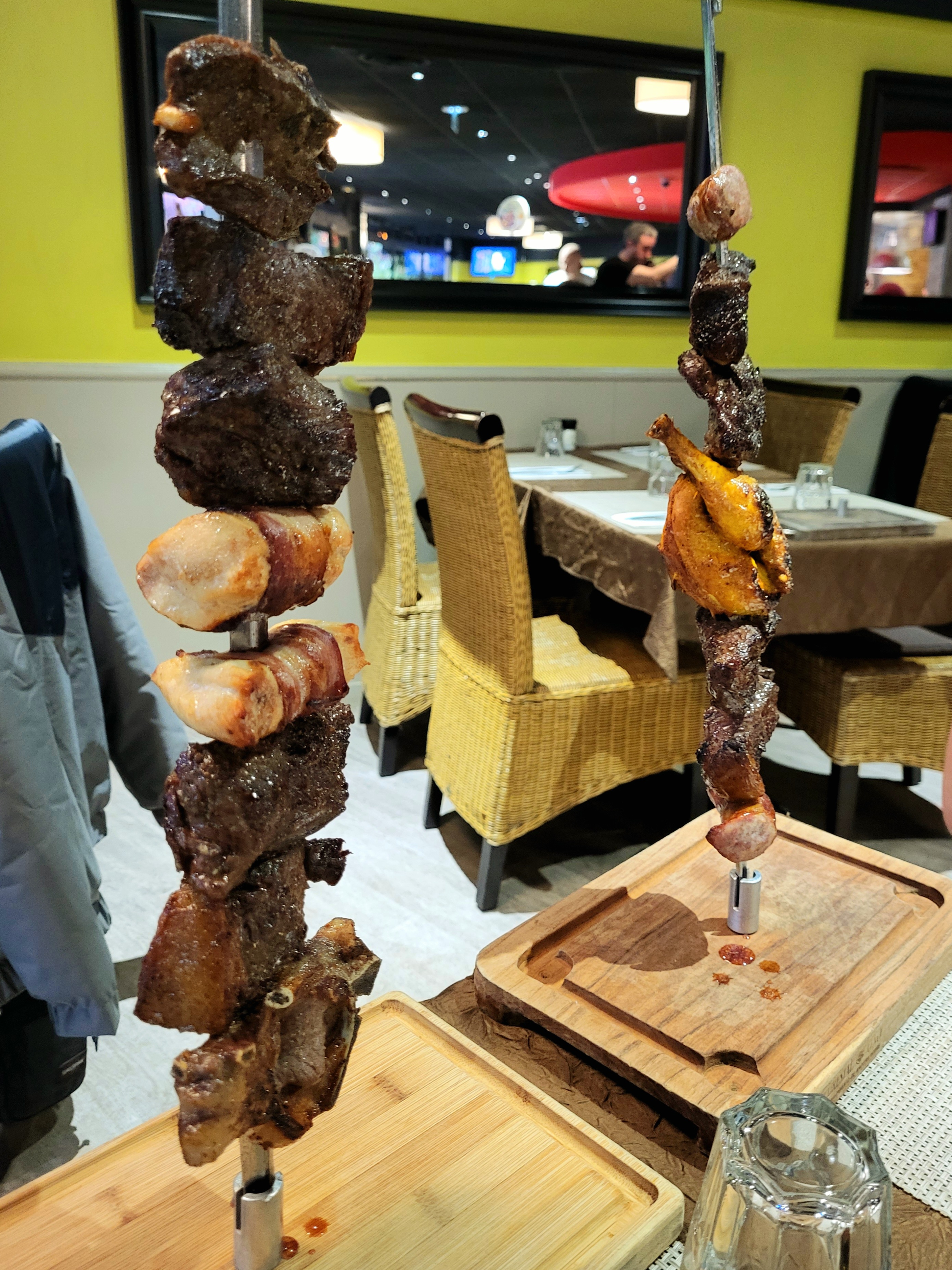 1ere visite à ce restau type buffet libre et énormes brochettes en supplément. Rien à dire sur les plats de viande du buffet, très goûteux ni sur les salades, variées. En revanche, j'ai trouvé qu'il y avait trop peu d'accompagnements chauds. Avis réservé sur les brochettes : j'ai demandé bien cuit et c'était manifestement une erreur : le bœuf s'est transformé en semelle