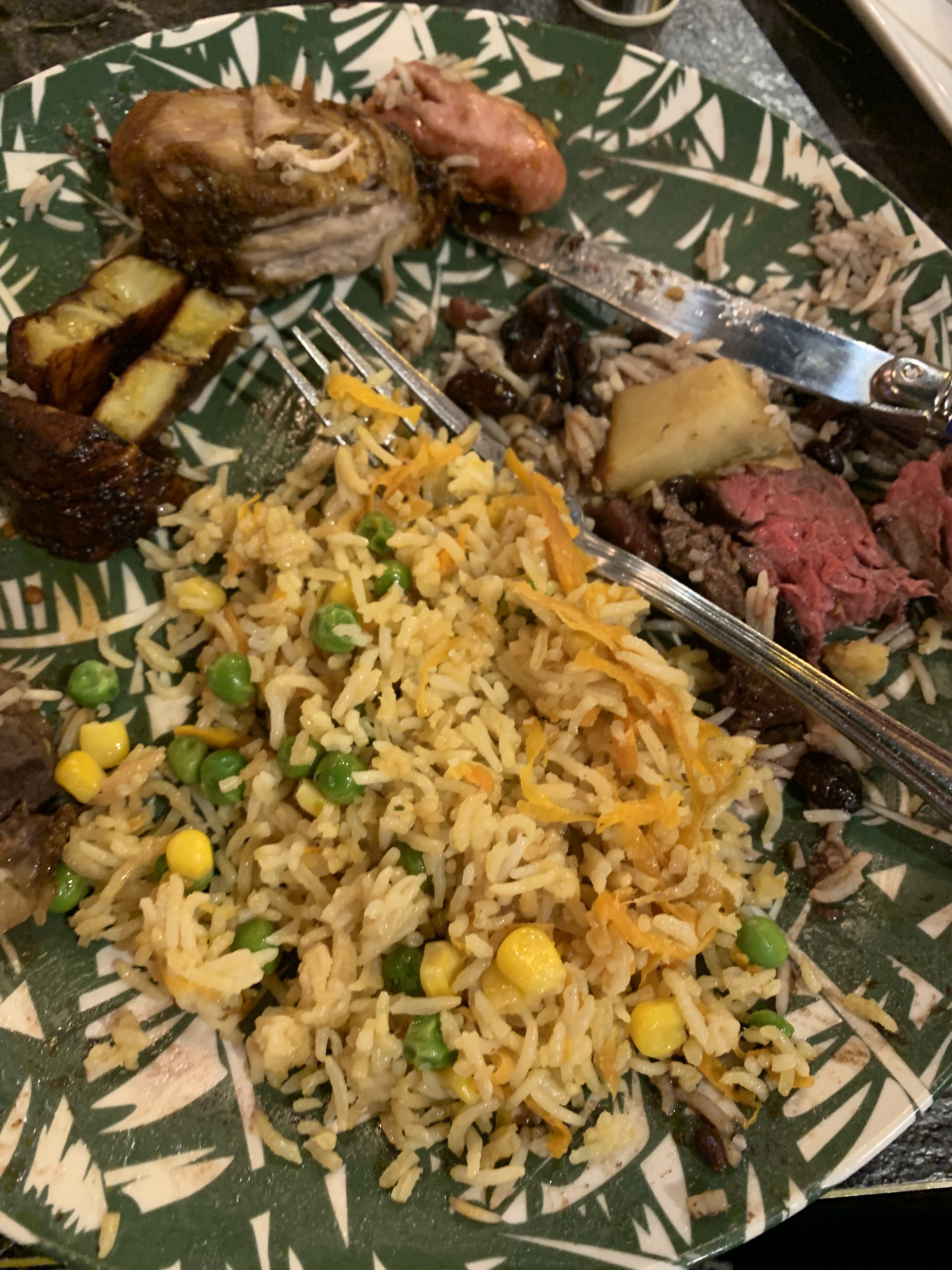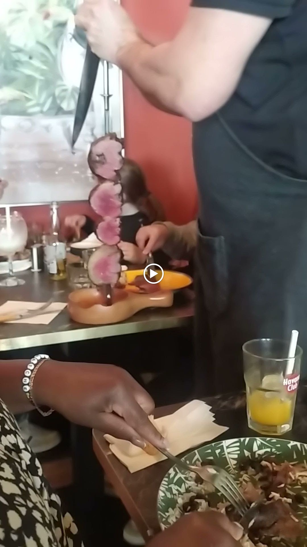 Très bonne ambiance. Les serveurs sont souriants et aimables. La viande est très bonne. Nous avons eu le droit à du poulet, du bœuf et de l'ananas, pas d'autre type de viande. Je m'attendais à avoir de l'agneau et du porc, mais non. Le buffet est assez complet, mais n'est pas ouf non plus. Les mocktails étaient vraiment trop sucrés. Personnellement, je trouve que ça fait cher par personne si vous prenez un dessert et une boisson.